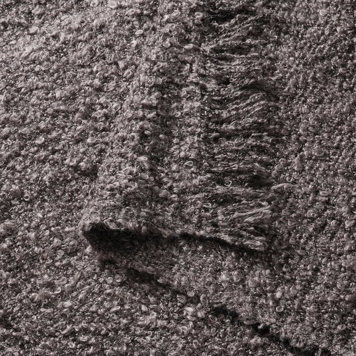 - بطانية تلفزيون باللون الرمادي الغامق محبوكة بنسيج مجعد وشرابات و ناعمة للغاية ومريحة.