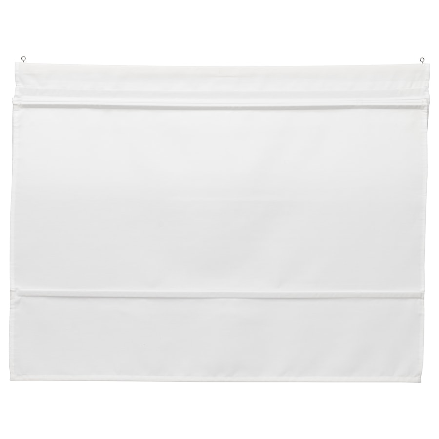 ستارة رومانية RINGBLOMMA بلون ابيض، بمظهر كتان أنيق. يقوم القماش بتصفية الضوء ويخلق جوًا دافئًا في الغرفة. قابلة للغسل ومثالية في أي مكان - حتى في المطبخ والحمام. يمكنك التقاطه وإنزاله بمساعدة المغناطيس:
