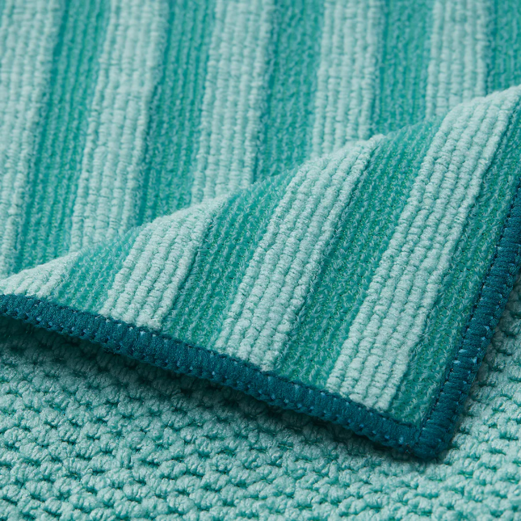 القماش الأخضر على الوجهين جانب واحد ناعم لتنظيف الأطباق والجانب الآخر خشن لإزالة البقع الصعبة التي تحتاج إلى تنظيف أكثر قوة دون خدش السطح.