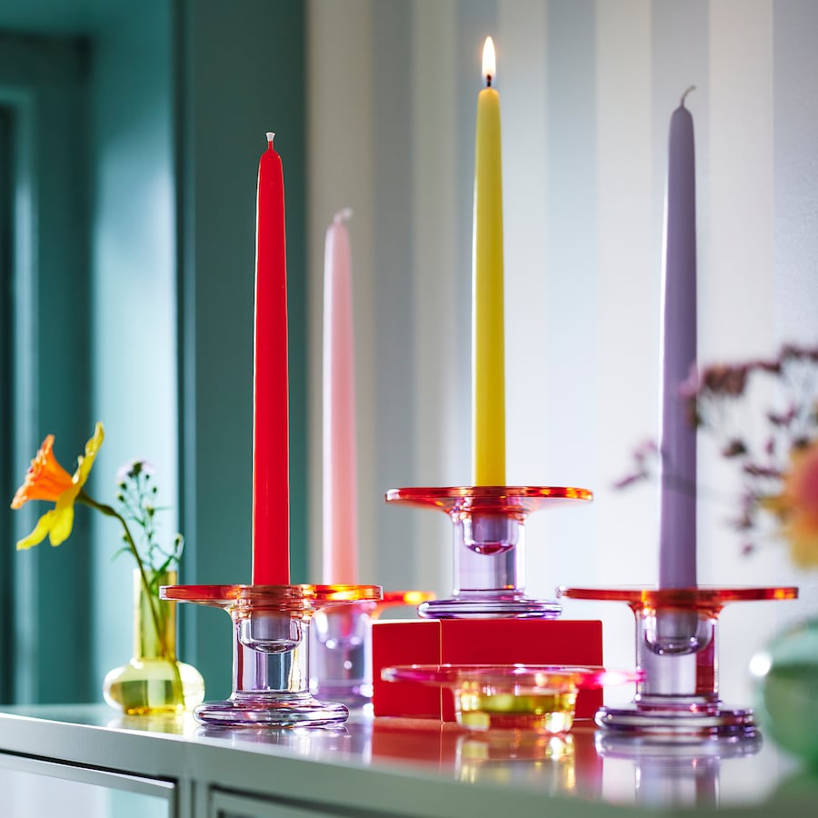 أضف لمسة من اللون إلى إعداد طاولتك. هذه الشمعدان مصنوع من الزجاج مع سطح غير مستوٍ قليلاً - مما يخلق جوًا لطيفًا وملونًا للوجبات اليومية والمناسبات الخاصة على حد سواء.