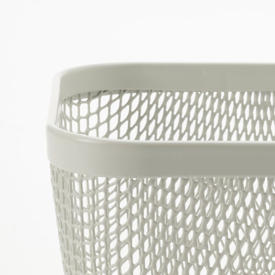 سلة تخزين عملية وأنيقة مصنوعة من المعدن المطلي باللون الرمادي الفاتح، مثالية لتخزين الفواكه، الخضروات، الخبز، أو تنظيم الزجاجات والبرطمانات في المطبخ.