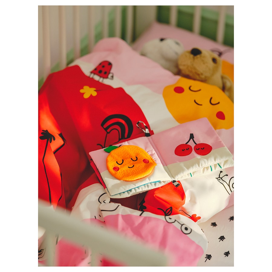 - كتاب لعب تفاعلي قابل للطي، يحتوي على شخصيات مرحة مصنوعة من أقمشة ومواد ذات ملمس مختلف، مما يشجع طفلك على استكشاف العالم من حوله.