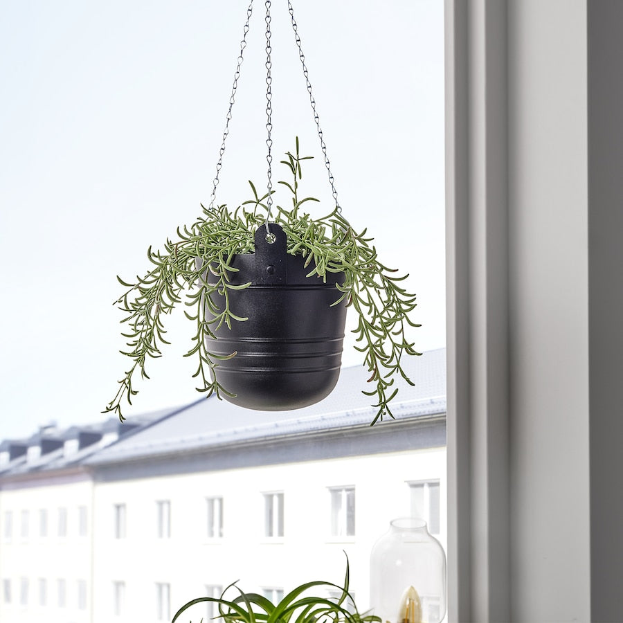 حامل نباتات مُعلّق PÄRLRÖNN، للاستخدام الداخلي والخارجي، أسود، 15 سم