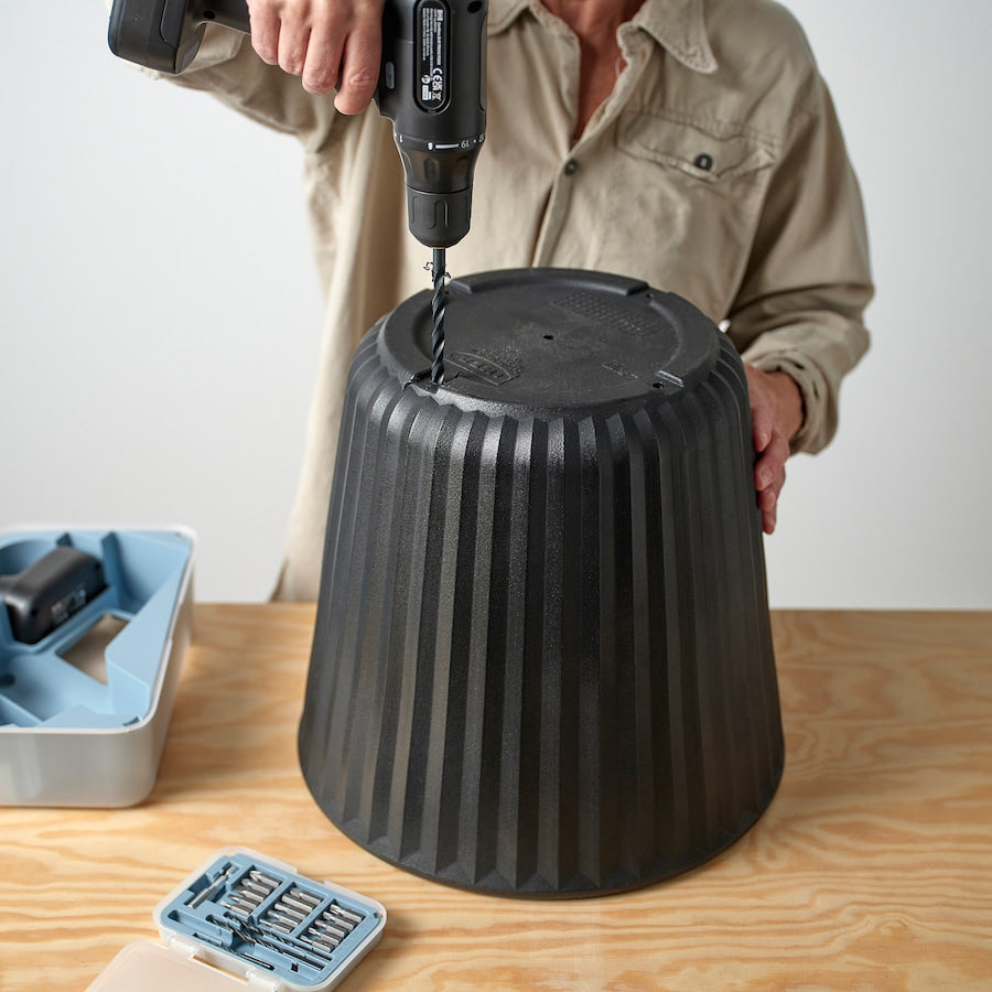 أواني نباتات بحجمين تناسب أيضًا النباتات الأكبر حجمًا قليلًا. إنها خفيفة الوزن، لذا يمكن حملها وتكديسها بسهولة. يمكنك أيضًا حفر فتحات تصريف في الجزء السفلي واستخدامها خارج المنزل.