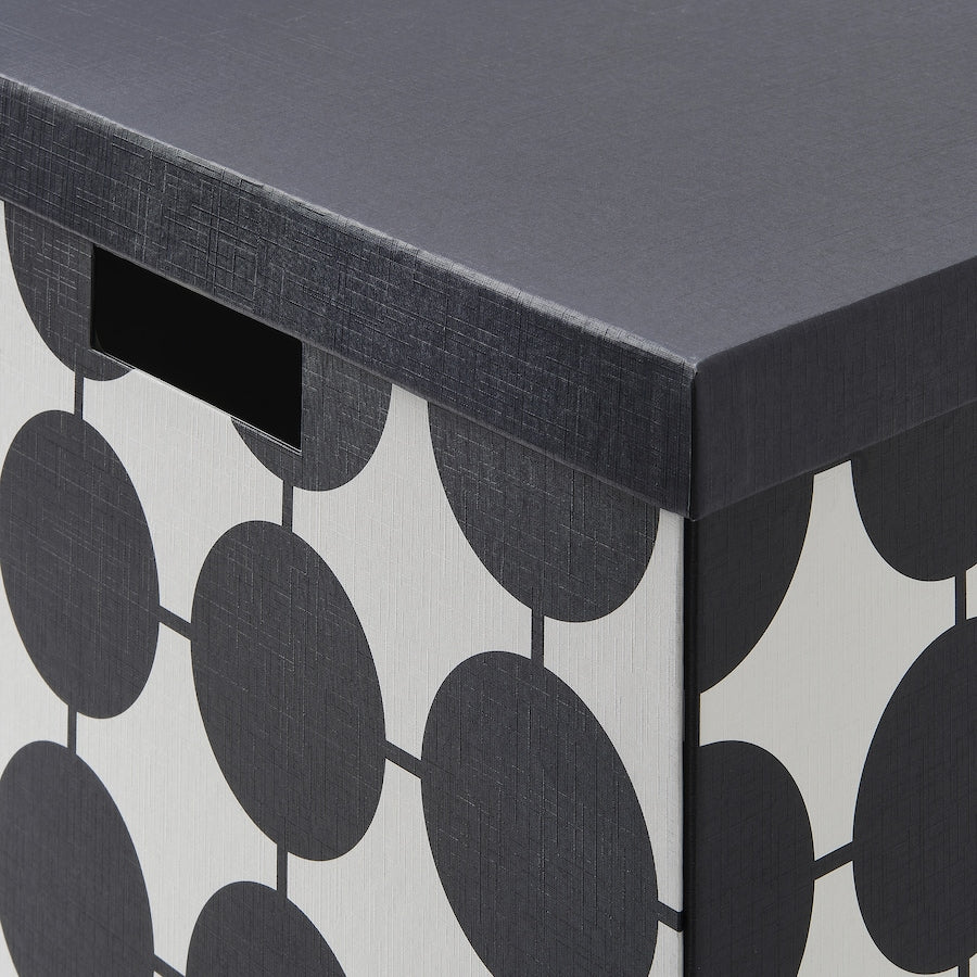 - صندوق التخزين العملي هذا مصنوع من الورق المقوى الصلب المعاد تدويره - ومغطى بورق مزخرف يتميز بنمط رسومي.